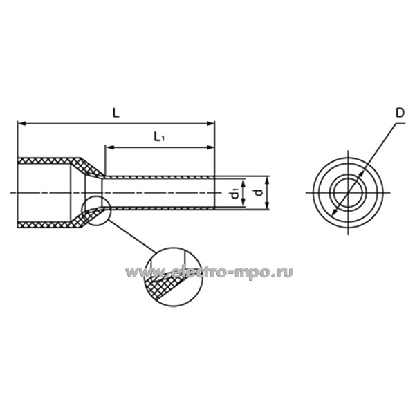 Г3949. Наконечник 79453 НШВИ 25-16 медный 25мм2 втулочный изолированный на 1 провод, ПВХ (КВТ)