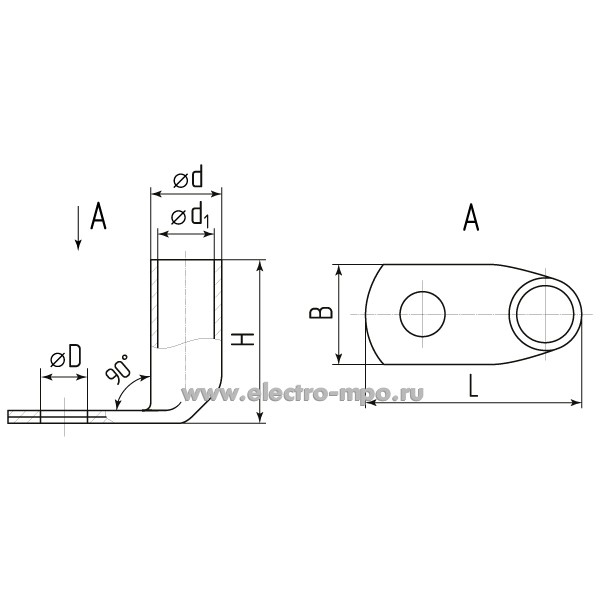 Наконечник 70296 угловой ТМЛс(90) 120-12 лужёный под опрессовку (КВТ Калуга)