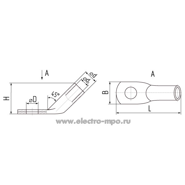Г41. Наконечник 77802 ТМЛс(45) 50-8 угловой медный 50мм2 лужёный под опрессовку (КВТ Калуга)