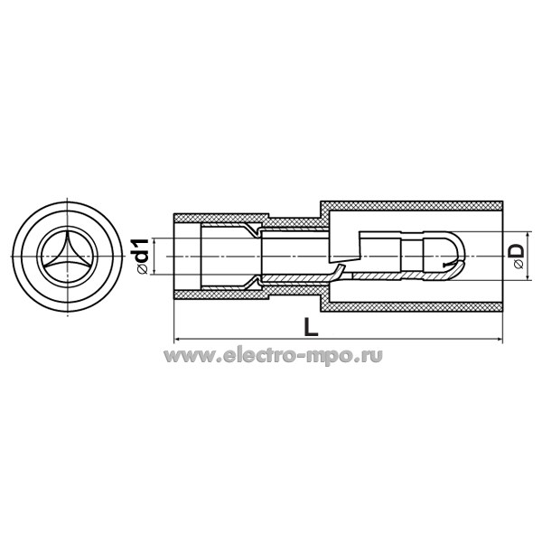 Разъем 66675 штекерный ВРШИ-П(н) 2,5-4 латунный изолированный "папа" 1,5-2,5мм2, нейлон (КВТ)