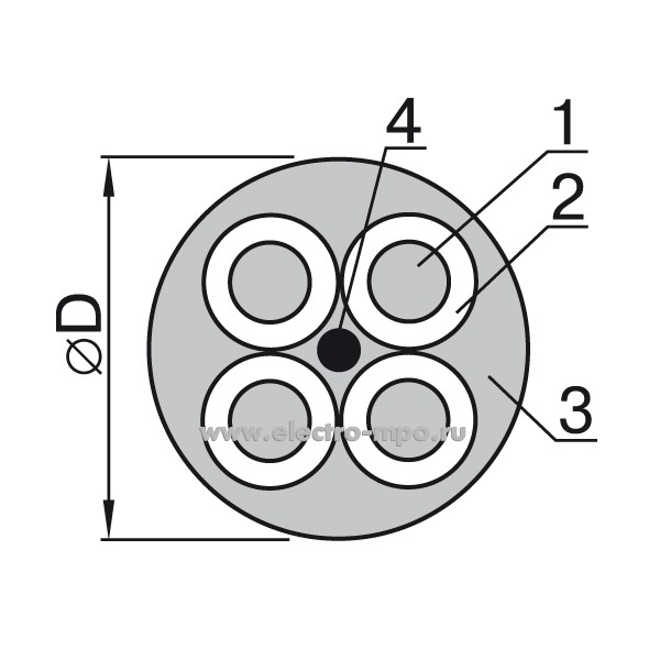 П1002. Кабель силовой ВВГнг(А) 4х1,5ок (N) - 0,66 ГОСТ (Электрокабель Кольчугино)