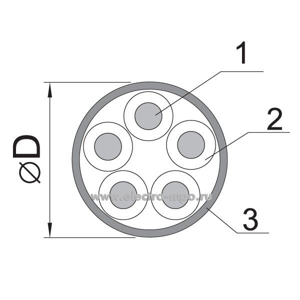 П1064. Кабель силовой ВВГнг(А) 5х10,0ок (N,PE)-0,66 ГОСТ Dн=17,4мм, Р=0,64кг/м (Брэкс Брянск)