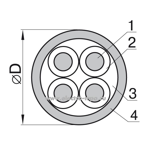 Кабель силовой ВВГнг(А)-LS 4х4,0ок - 0,66 ГОСТ (Калужский кабельный завод)