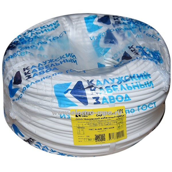 Провод ПВС 4х0,75 кв.мм белый ГОСТ (Калужский кабельный завод)