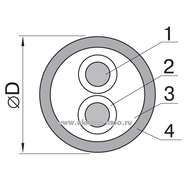 П2975. Кабель NUM-O 2х1,5 кв.мм ГОСТ (Калужский кабельный завод)