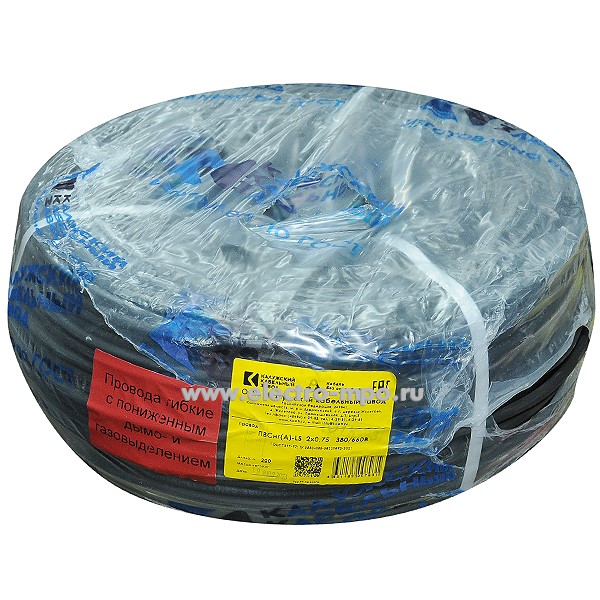 Провод ПВСнг(А)-LS 2х0,75 кв.мм черный ГОСТ малодымный (Калужский кабельный завод)