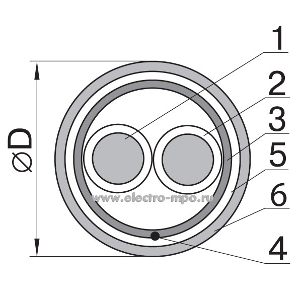 Кабель КСРЭВнг(А)-FRLS 1х2х1,13 мм 101077 ГОСТ огнест. нераспр. горение малодым. Dн=7,6 мм, Р=0,054
