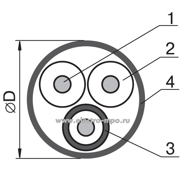 Шнур комбинированный ШВЭВ 3х0,12 кв.мм для систем контроля доступа 100179 ГОСТ (Паритет Подольск)
