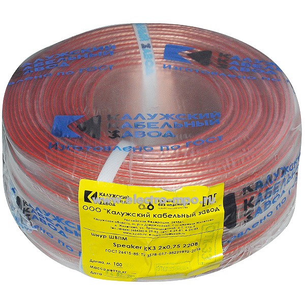 Аудиошнур ШВПМ 2х0,75 кв.мм Speaker ГОСТ прозрачный с красной полосой (Калужский кабельный завод)