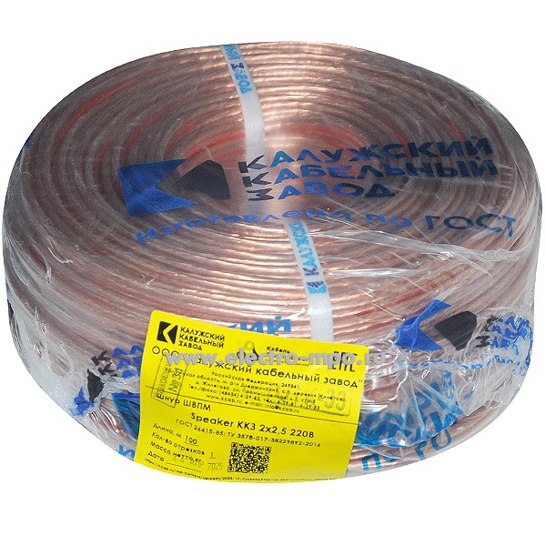 Аудиошнур ШВПМ 2х2,5 кв.мм Speaker ГОСТ прозрачный с красной полосой (Калужский кабельный завод)