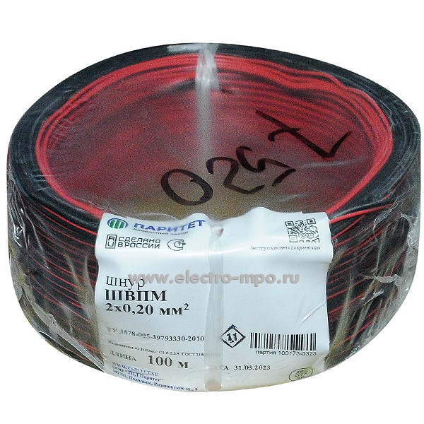 П7520. Аудиошнур ШВПМ 2х0,20 кв.мм 100173 ГОСТ красно-черный (Паритет Подольск)