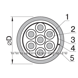 Кабель КВВГЭ 7х1,5 кв.мм ГОСТ экранированный Dн=11,8 мм, Р=0,222 кг/м (Подольсккабель)