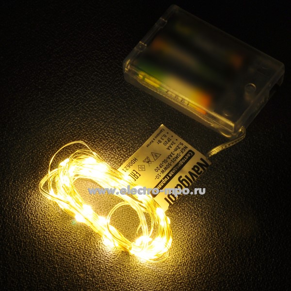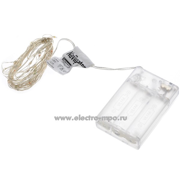 Светодиодная гирлянда "Роса" 80714 NGF-SM01-50WW 3хAA 5,2м 50LED т/б свет IP20 (Navigator)