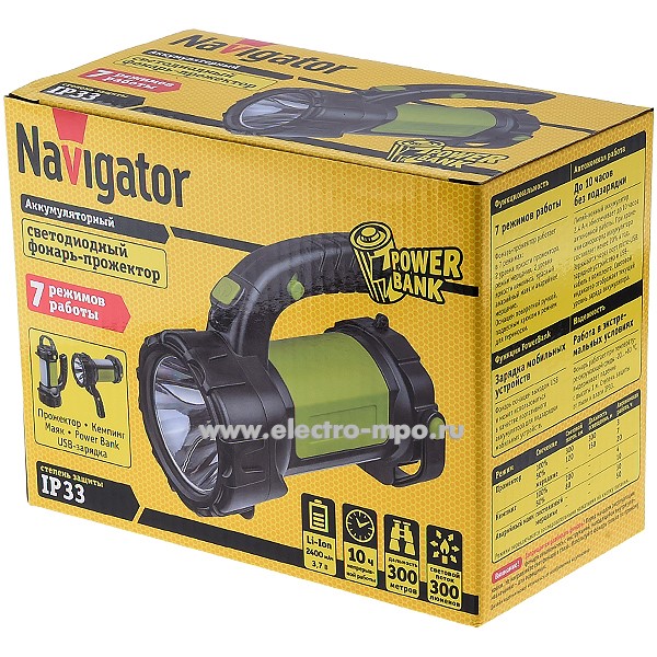 Фонарь 14510 NPT-SP24-ACCU 3Вт светод. аккумуляторный и powerbank IP33 (Navigator)