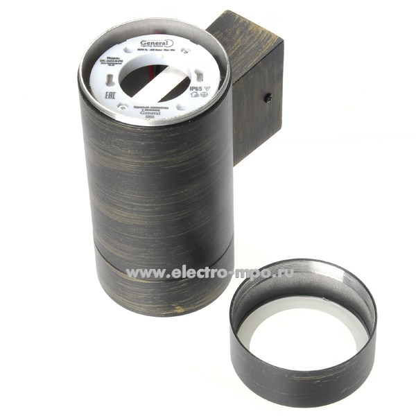 Светильник 661129 GWL-2GX53-M-IP65 фасадный 2хGX53 220В черный с золотом IP65 (General)