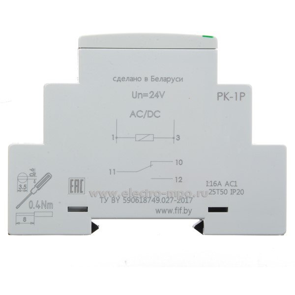 Реле PK-1P/24 промежуточное 24В АС/DC 16А 1 перекл. к-та (Евроавтоматика)
