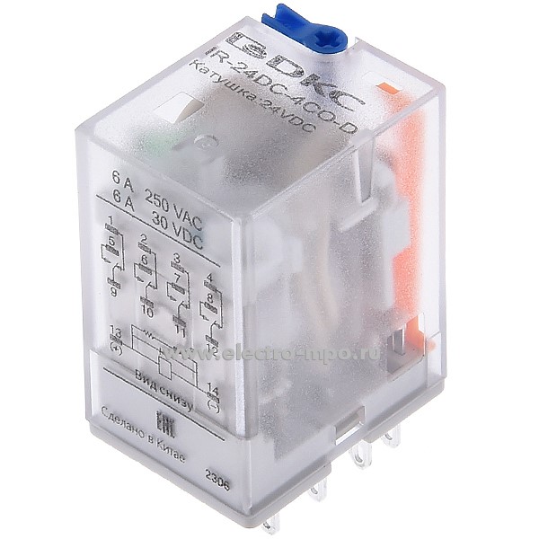 А4609. Реле промежуточное IR-24DC-4CO-D 24В DC 6А 4 перекл. контакт LED (ДКС)