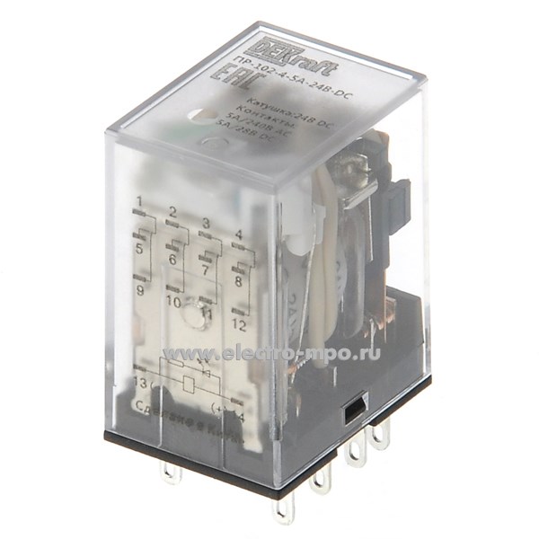 А4675. Реле промежуточное ПР-102-4-5A-24В-DC 23887DEK DC24В 5А 4 перекл. контакта LED (DEKraft)