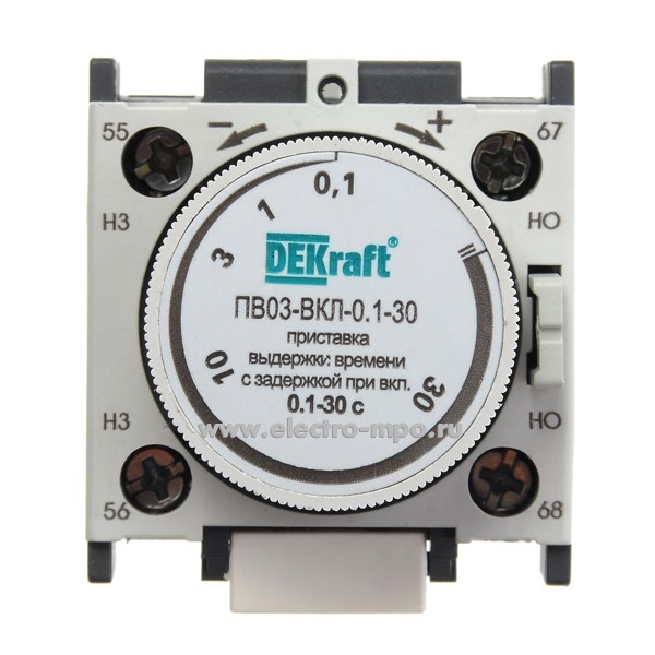 Приставка выдержки времени ПВ03-ВКЛ-0.1-30 24112DEK 1з+1р 0,1-30с при включении (DEKraft)