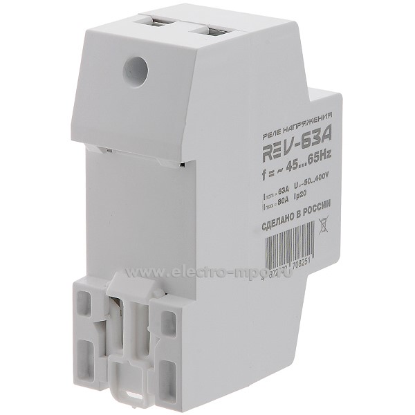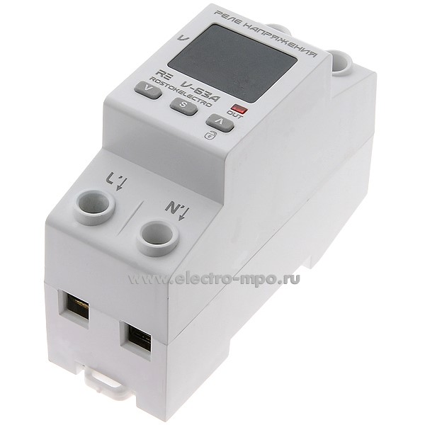 - А7633. Реле напряжения RE V-63A 1ф 220В Umin120-200В/Umax210-270В 63А 1з (ROSTOKELECTRO)