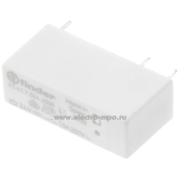 - А9420. Реле промежуточное 43.41.7.024.2000 24В DC 10А 1перекл. контакт серия 43 (Finder)