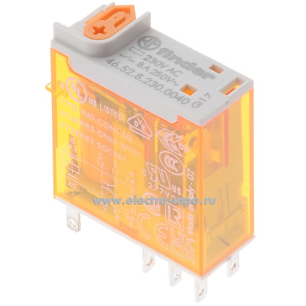 Реле промежуточное 46.52.8.230.0040 230В AC 8А 2перекл. контакта серия 46 (Finder)