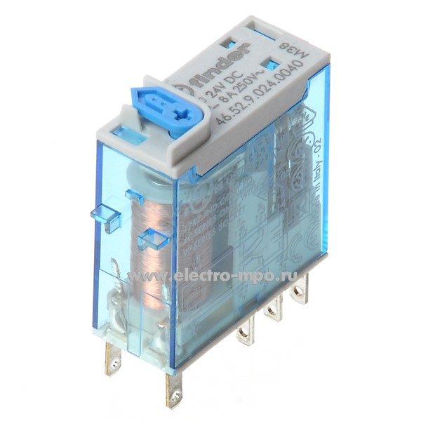 - А9423. Реле промежуточное 46.52.9.024.0040 24В DC 8А 2перекл. контакта серия 46 (Finder)