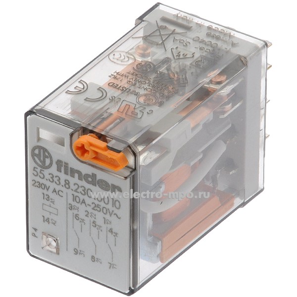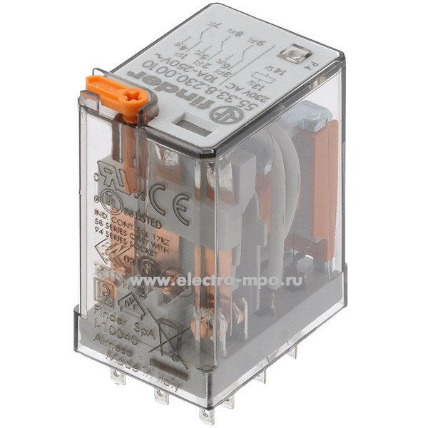 Реле промежуточное 55.33.8.230.0010 230В AC 10А 3перекл. контакта серия 55 (Finder)