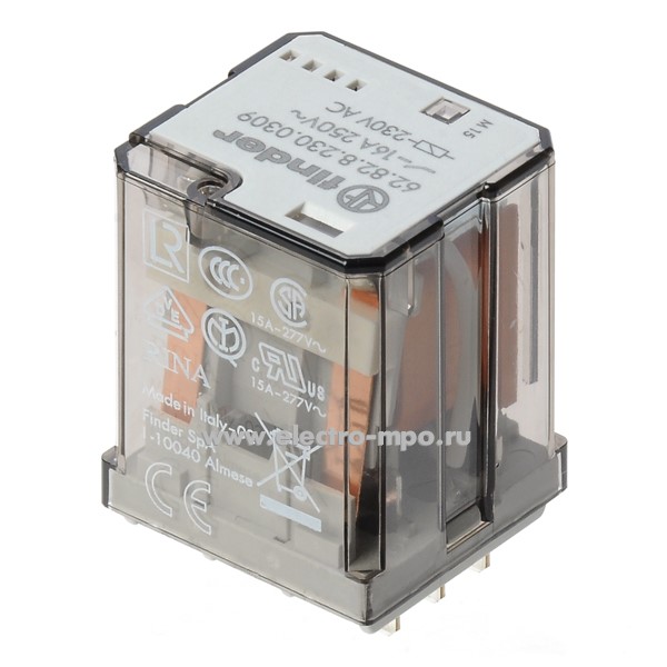 Реле промежуточное силовое 62.82.8.230.4309 230В AC 16А 2з серия 62 (Finder)