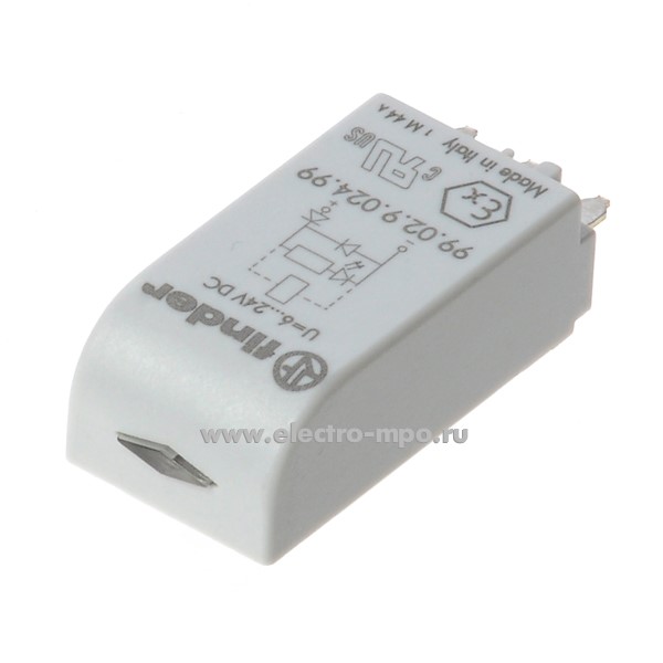 А9467. Модуль индикации 99.02.9.024.99 зеленый LED + диод 6...24В DC серия 99 (Finder)