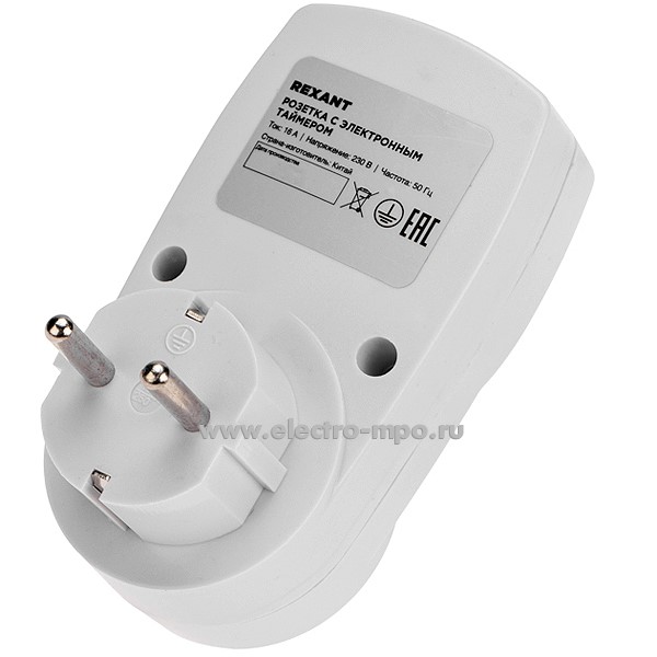 Р00. Розетка 11-6010 с электр. таймером недельный 1мин/7дн 20 программ ON/OFF RX-31А (Rexant)