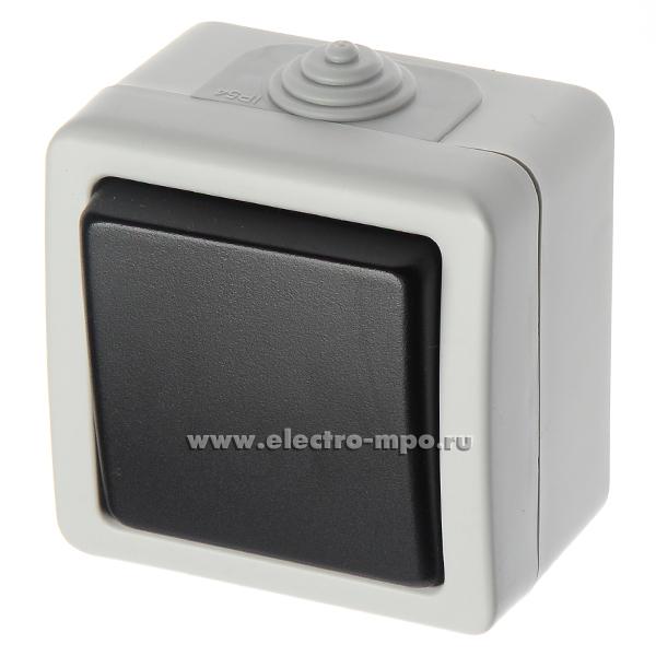 Ю2377. Выключатель LK Aqua 80001 1кл. о/п IP54 серый клавиша черная (Экопласт)