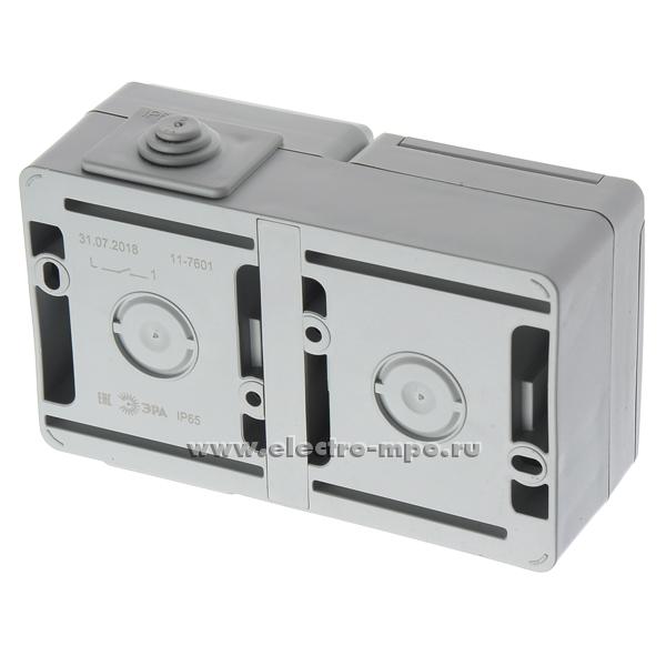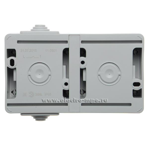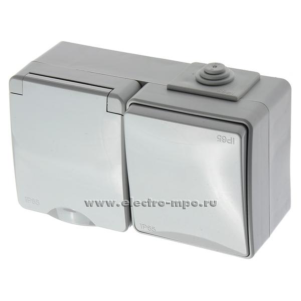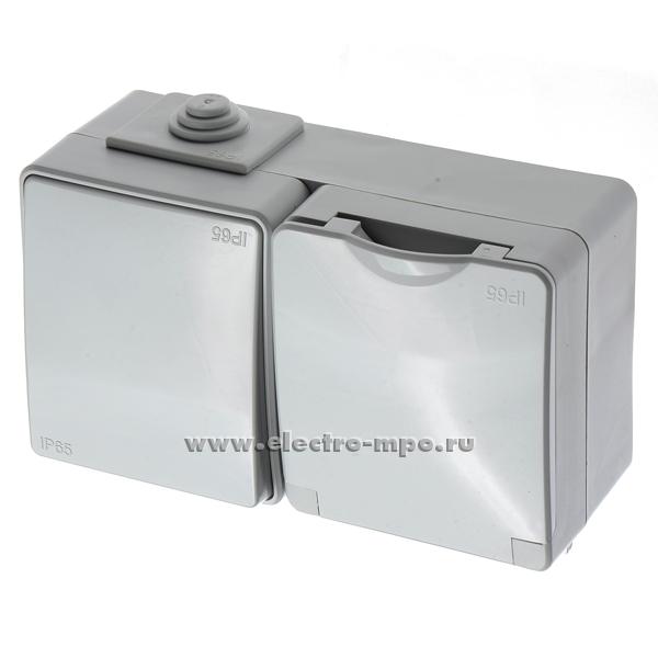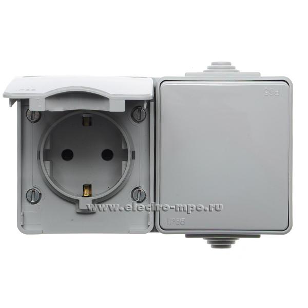 Ю2446. Блок Эксперт 11-7601-03 Б0035993 (выкл. кл.+розетка "евр" с крыш.) горизонтальный IP65 серый о/п (Э