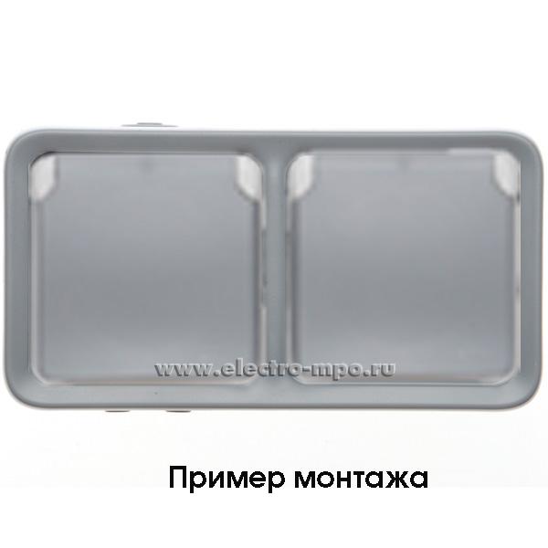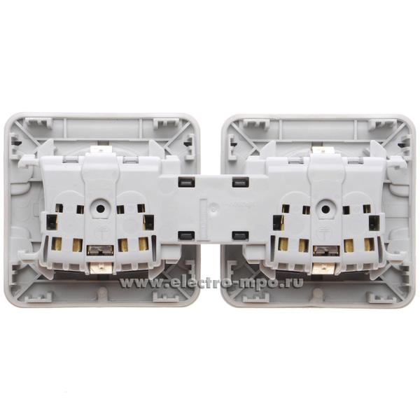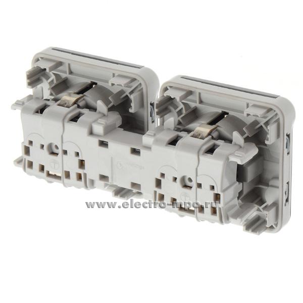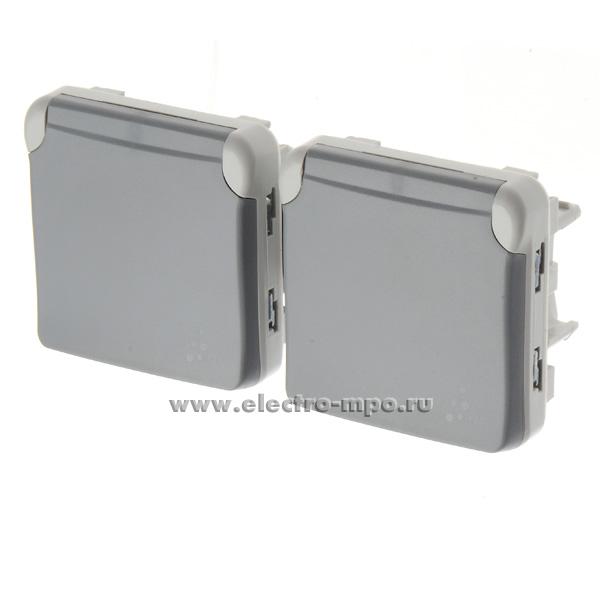 Ю6931. Механизм Plexo 069576 розетки "евр" двойной с крышками со шторками горизонт. IP55 с/п серый (Legra