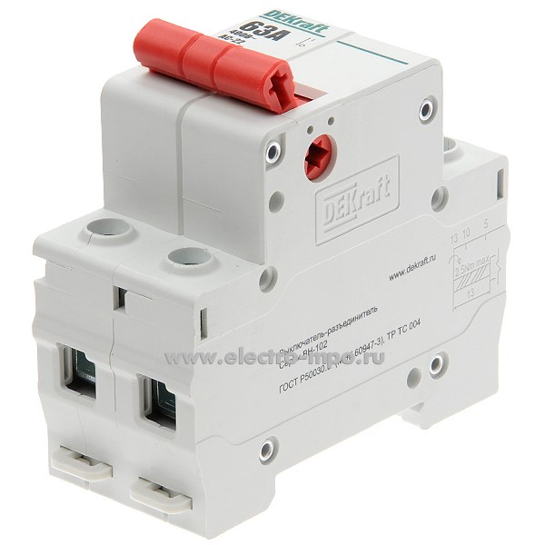 Выключатель-разъединитель ВН102-2Р-063А 17007DEK 63А 2 полюса на DIN-рейку (DEKraft)