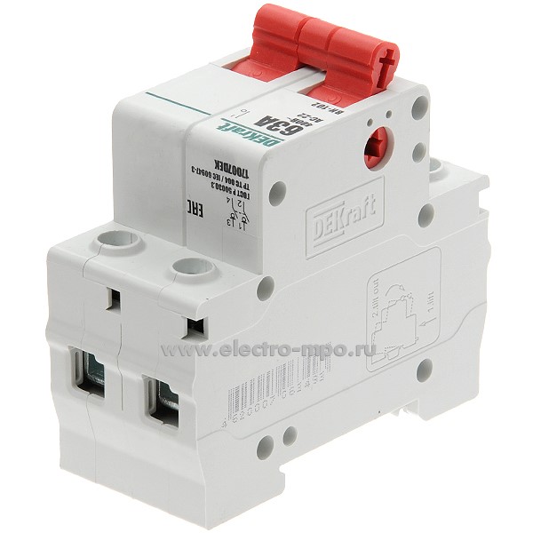 А4848. Выключатель-разъединитель ВН102-2Р-063А 17007DEK 63А 2 полюса на DIN-рейку (DEKraft)