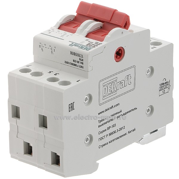 Переключатель ВР103-2Р-16А 17206DEK /2п/ 16А 3 положения 2 перекл. к-т на Din-рейку (DEKraft)