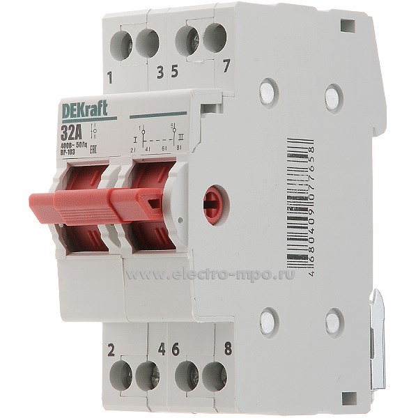 А4864. Переключатель ВР103-2Р-16А 17206DEK /2п/ 16А 3 положения 2 перекл. к-т на Din-рейку (DEKraft)