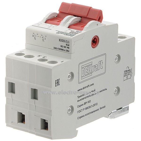 А4869. Переключатель ВР103-2Р-40А 17210DEK /2п/ 40А 3 положения 2 перекл. к-т на Din-рейку (DEKraft)