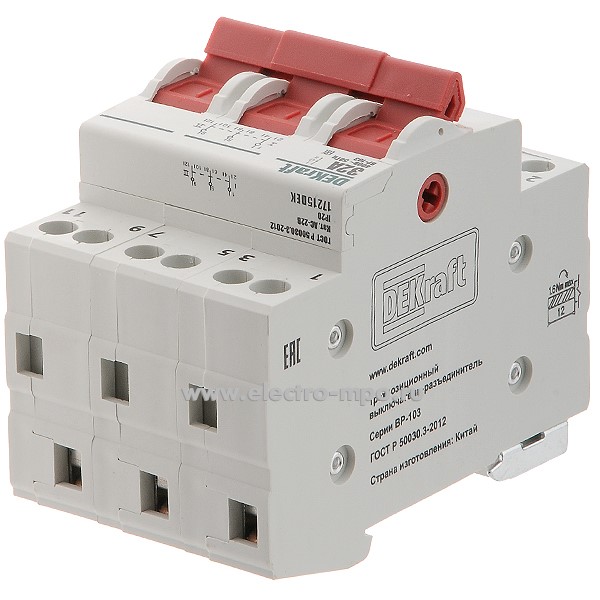 Переключатель ВР103-3Р-16А 17212DEK /3п/ 16А 3 положения 3 перекл. к-т на Din-рейку (DEKraft)