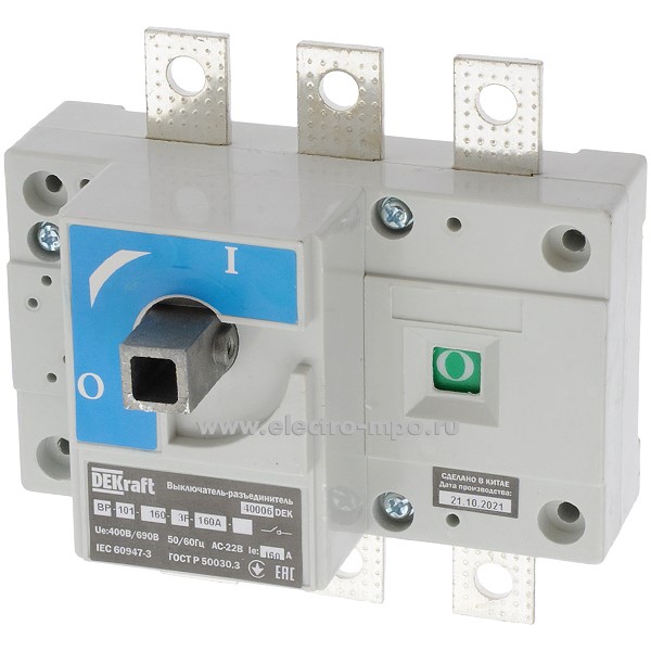 Рубильник ВР-101 40006DEK 160А 3 полюса на монтажную плату (DEKraft)