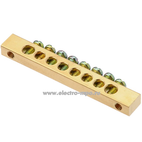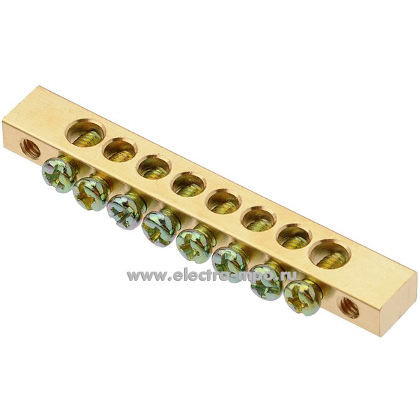 Э1412. Шина ШН102-08-100 32002DEK РЕ8 земля на 8 отв. латунь 63А крепеж по краям (DEKraft)