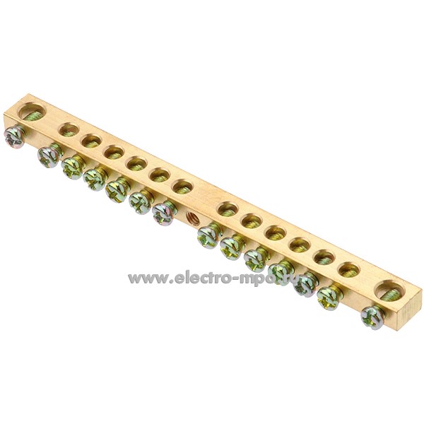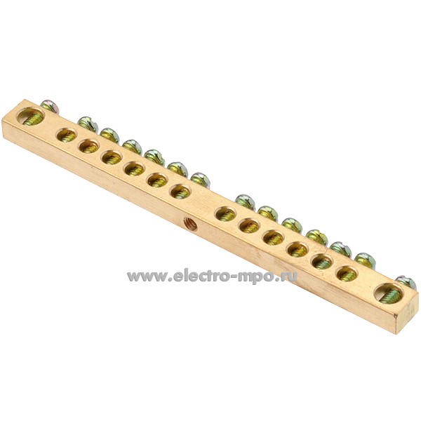 Шина ШН101-14-100 32003DEK РЕ14 земля на 14 отв. латунь 63А крепеж по центру (DEKraft)
