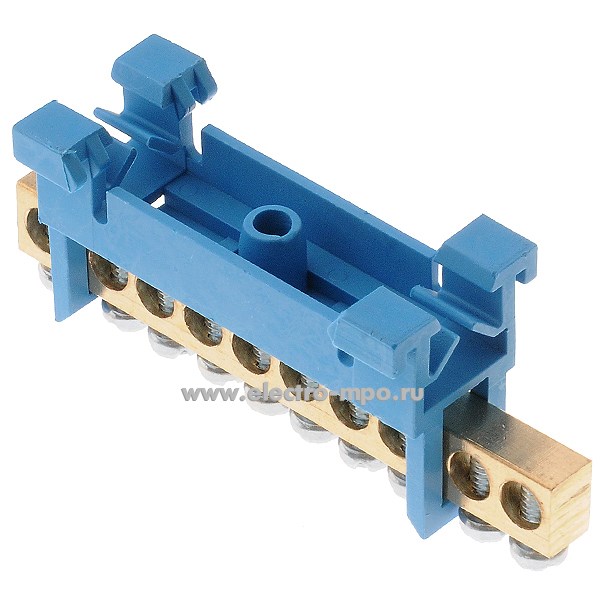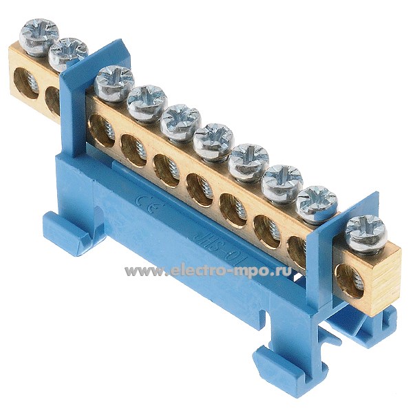 Э1807. Шина JHS01-0609-Way 10 ноль на DIN-рейку на 10 присоединений латунь 100А (Электромонтаж)