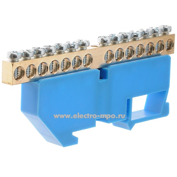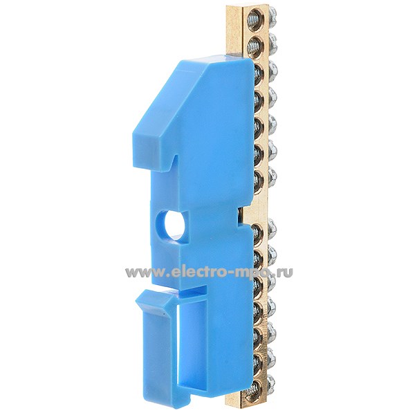 Э1812. Шина JHS05-0609-Way 14 ноль на DIN-рейку на 14 присоединений латунь 100А (Электромонтаж)
