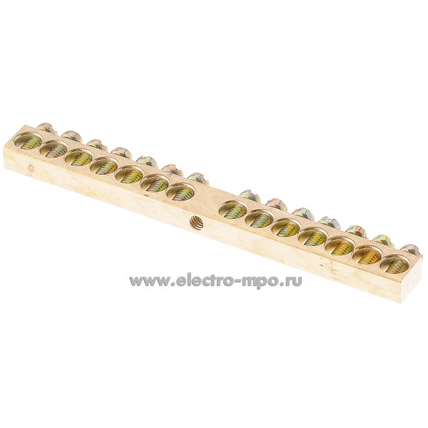 Э1851. Шина BB-0609/14+1 земля на 14 присоединений латунь 100А (Электромонтаж)