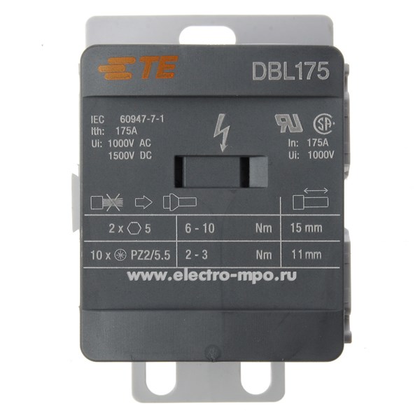 Э2117. Распределительный блок DBL175 1 полюс 175А 1 шина на 12 присоединений 1SNL317510R0000 (TE)