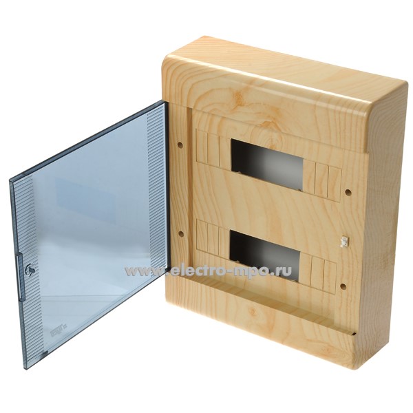 Е0942. Бокс 68324-27М цвет-сосна на 24 модуля с клеммником с прозрачной дверцей IP40 (Рувинил Москва)