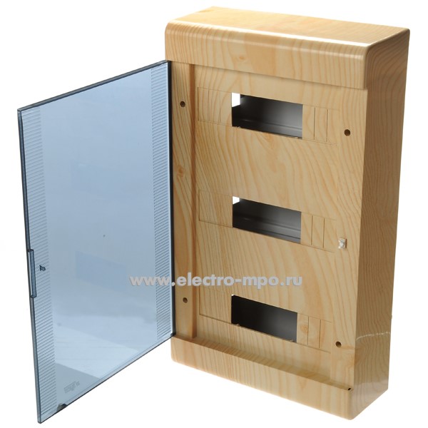 Е0949. Бокс 68036-27М цвет-сосна на 36 модулей с клеммником с прозрачной дверцей IP40 (Рувинил Москва)