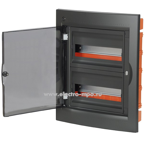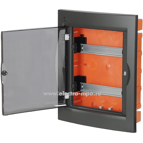 Е1076. Бокс RB24B4TBD RAM base встраиваемый черный 24 модуля прозрачная дверь IP41 с клеммником 63А (Д
